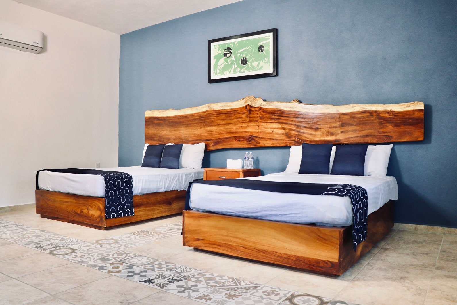 This room offers all the essentials, focusing on your rest and comfort. Parking is conveniently located nearby for added convenience. Its simple design highlights artistic details, such as wooden headboards with natural grains and essences, giving the space a unique and cozy touch.